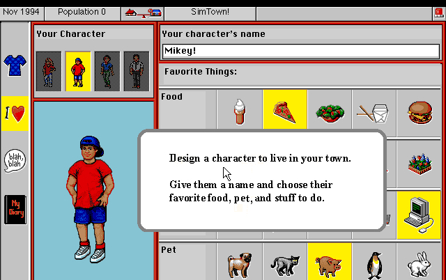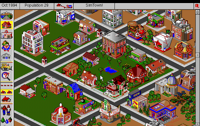 SimTown is a 1995 personal computer game published by Maxis, much like the best selling SimCity and Sims but on a smaller scale. SimTown allows the player to construct a town consisting of streets, houses, businesses and parks and then control the people in it. SimTown was one of the many 'Sim' spin-offs at the time, and was targeted more towards children.